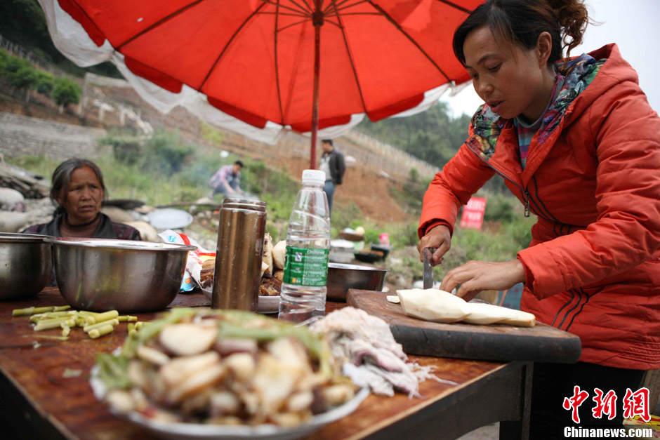 打通宝兴生命线:沿路灾民搭土灶煮饭