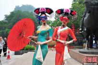 4月29日,华东一级批发采购基地安徽芜湖市瑞丰商博城举办“五一”促销购物嘉年华活动。在商城表演舞台上,一位人体彩绘女模与彩绘师登台展示,与多位比基尼模特共同展示前沿时尚。中新社发 李青松 摄 图片来源:CNSPHOTO