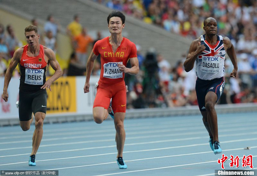 田径世锦赛张培萌百米小组第一晋级 成绩超博尔特