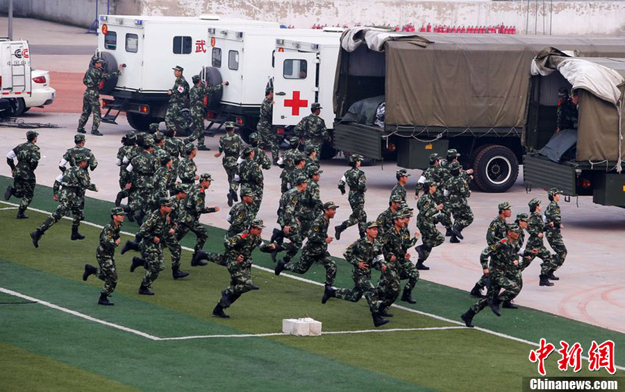 8月15日,北京市医疗卫生应急救援综合演习在公安消防总队训练基地举行,展示2003年非典以来最大规模的一次演习。王海欣 摄 图片来源:CFP视觉中国