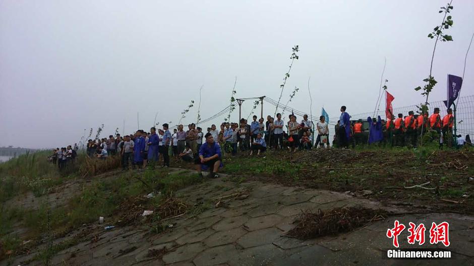 6月1日约21时28分,一艘从南京驶往重庆的客船在长江中游湖北监利水域沉没。出事船舶载客458人,其中内宾406人、旅行社随行工作人员5人、船员47人。图为6月2日,湖北荆州,潜江,仙桃等地赶来的专业救援队伍,正集结在附近等待重型装备,江面上有许多冲锋舟在事发江面来回搜索,江面上有薄雾。张畅 摄
