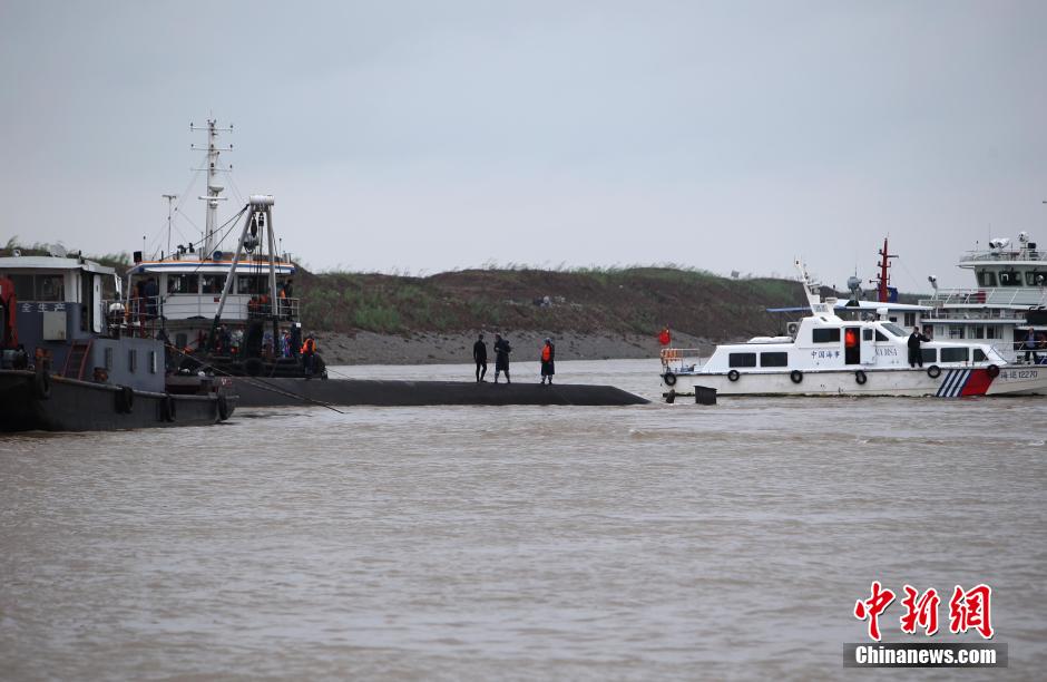 6月3日,搜救人员仍然在“东方之星”沉船地点及附近进行搜寻救援。满载456人的“东方之星”客船,6月1日晚约21时28分在南京驶往重庆途中突遇龙卷风,翻沉于长江中游湖北监利水域。中新社发 陈超 摄