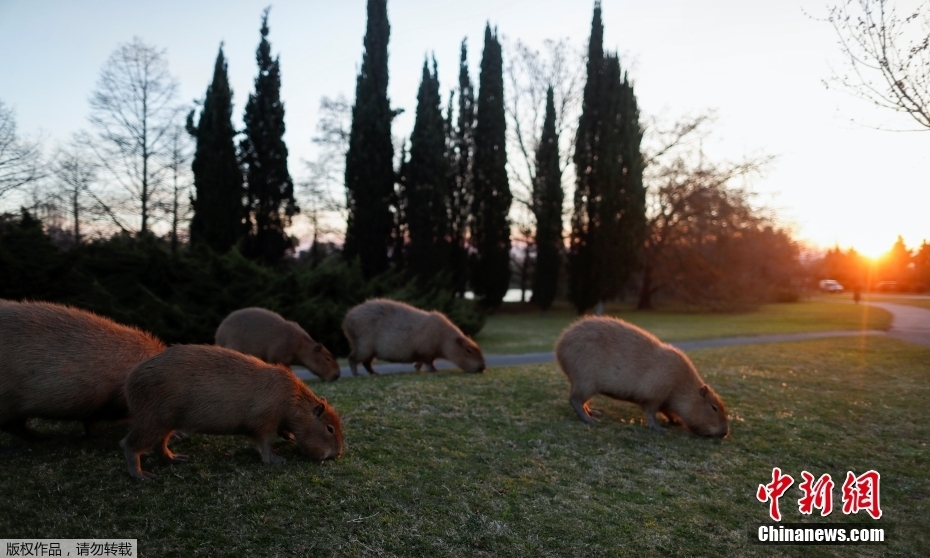 阿根廷首都一所社区迎来“新住户” 成群水豚在此安家