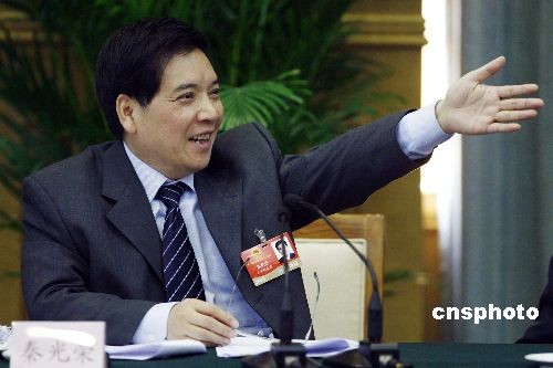 3月7日,十一届全国人大二次会议继续举行小组会,审议政府工作报告。在对中外媒体开放的云南代表团小组讨论会中,云南省省长秦光荣主动邀请记者提问。中新社发 盛佳鹏 摄