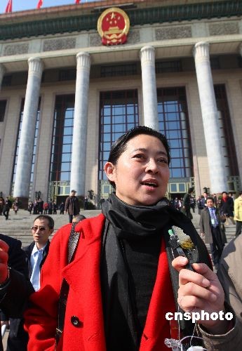 3月8日,众多女委员在国际妇女节当日出席全国政协十一届二次会议第三次全体会议。图为倪萍委员在会后轻松步出人民大会堂。中新社发 杨可佳 摄
