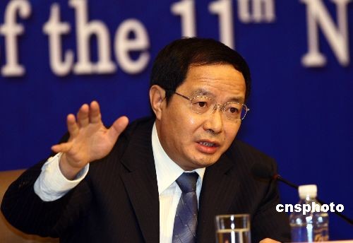 3月12日,十一届全国人大二次会议新闻中心举行“文化市场与文化产业发展”专题采访会,文化部副部长欧阳坚接受记者采访时表示,在全球金融危机的大环境下,国外有关资产急剧萎缩,这种萎缩为我国的文化产业的进入创造了难得的机会,应该抓住这个机遇,促使我国的文化产业实现超常规跨越式的发展。中新社发 杜洋 摄
