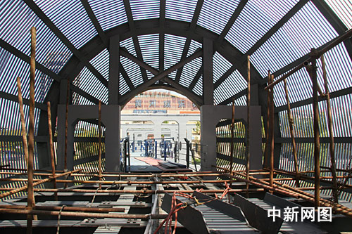 图为中国南北地理分界线工程主体建筑正在进行内部装修。中新网记者 蓝玉贵 摄