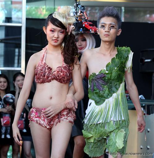 中新网7月4日电 据台湾今日新闻网报道,女神卡卡(lady gaga)3日首度访台,3日举办的造型造型大赛吸引不少参赛者到场,除了有服装系的学生外,也有疯狂粉丝想在“女神卡卡日”当天成为卡卡分身,现场有人打扮成“猪头”,现场也可以找到穿着“猪肉装”和“生菜装”的参赛者,现场犹如菜市场造型比赛。